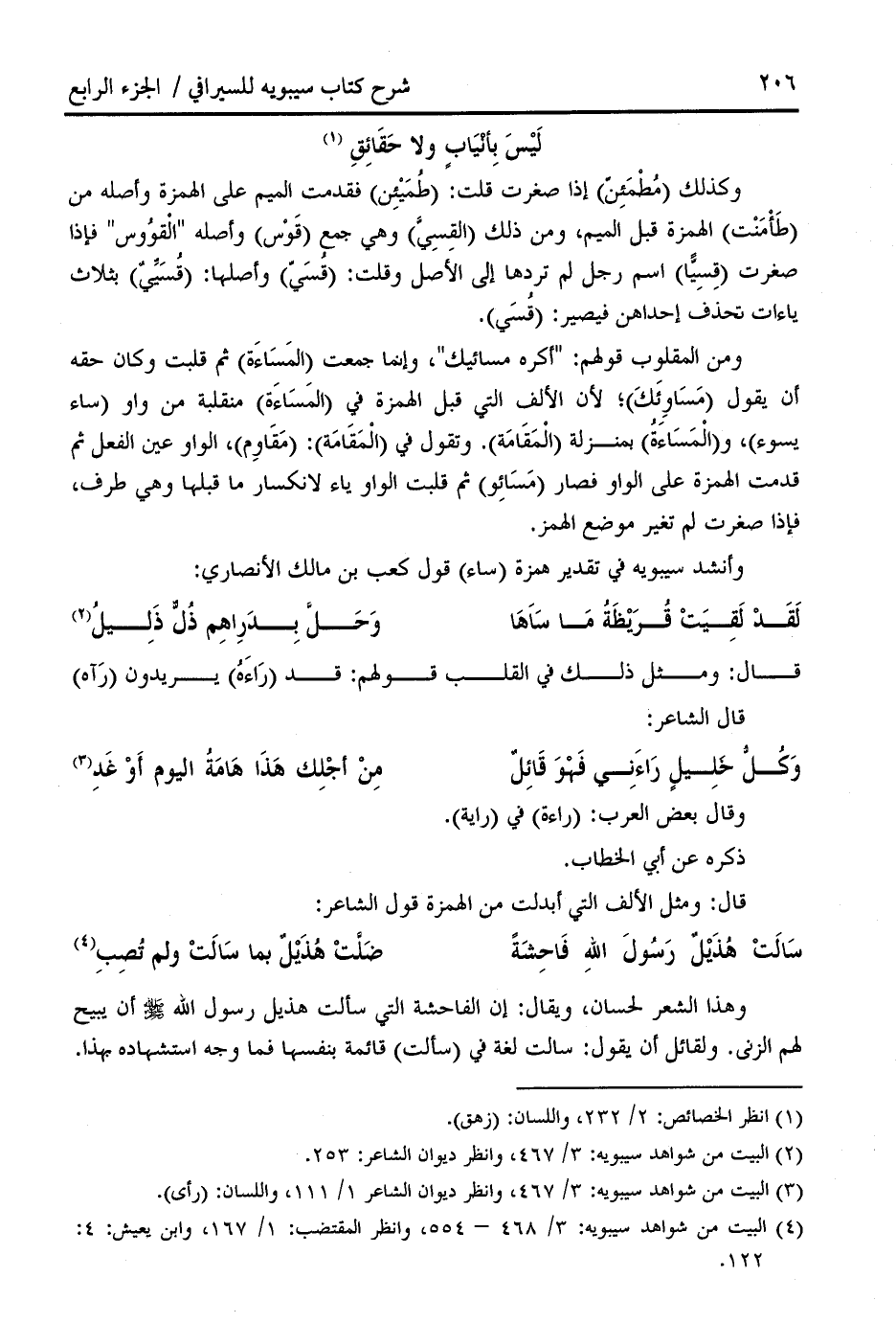 (¬4) البيت من شواهد سيبويه: 3/ 468 - 554، وانظر المقتضب: 1/ 167، وابن يعيش: 4: