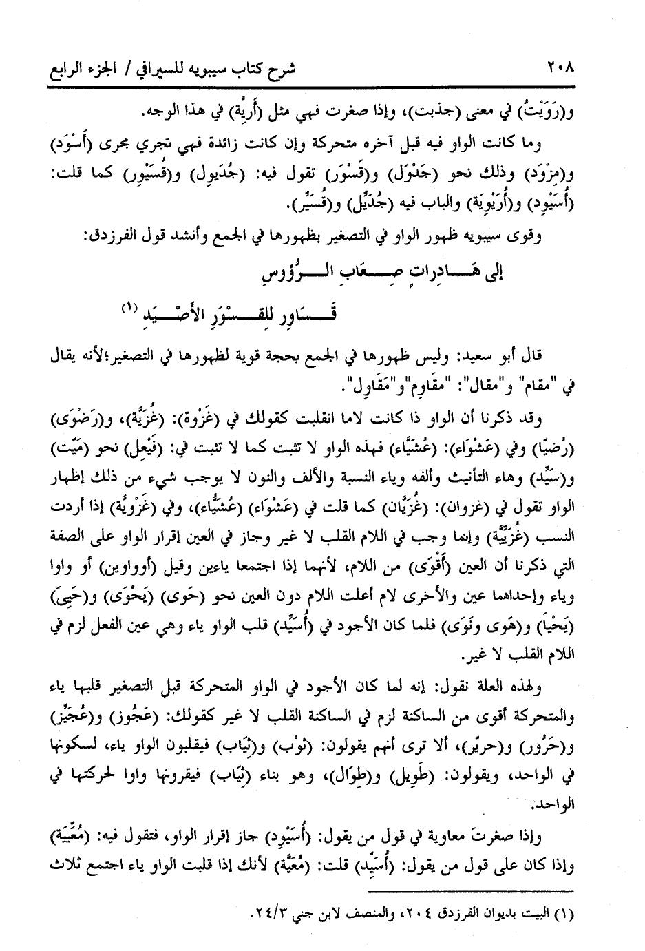 وقوى سيبويه ظهور الواو في التصغير بظهورها في الجمع وأنشد قول الفرزدق: