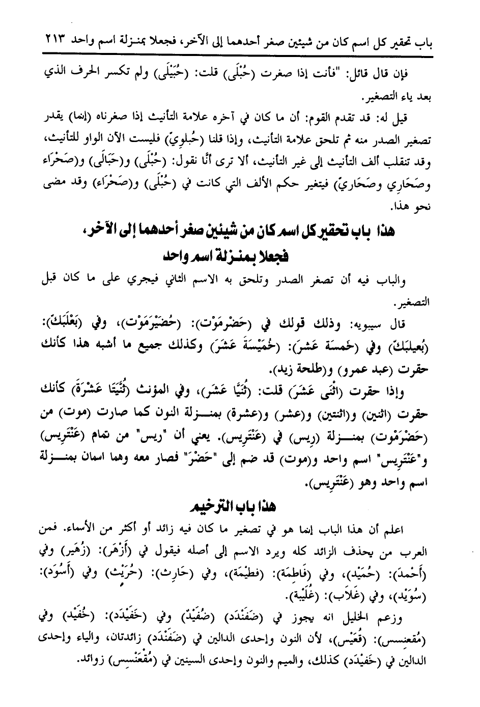هذا باب تحقير كل اسم كان من شيئين صغر أحدهما إلى الآخر، فجعلا بمنزلة اسم واحد