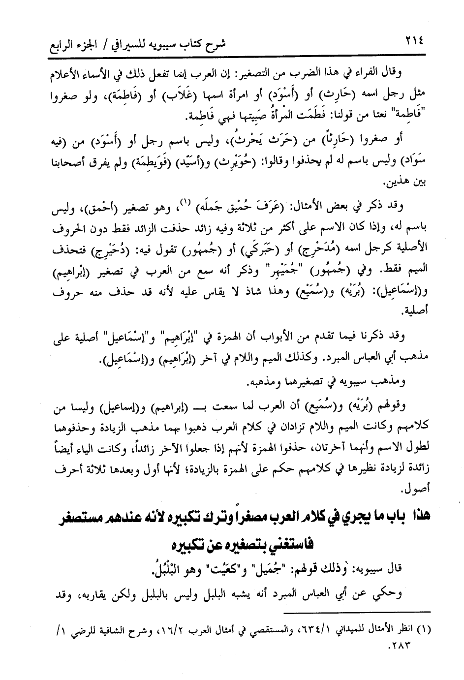 هذا باب ما يجري في كلام العرب مصغرا وترك تكبيره لأنه عندهم مستصغر فاستغني بتصغيره عن تكبيره