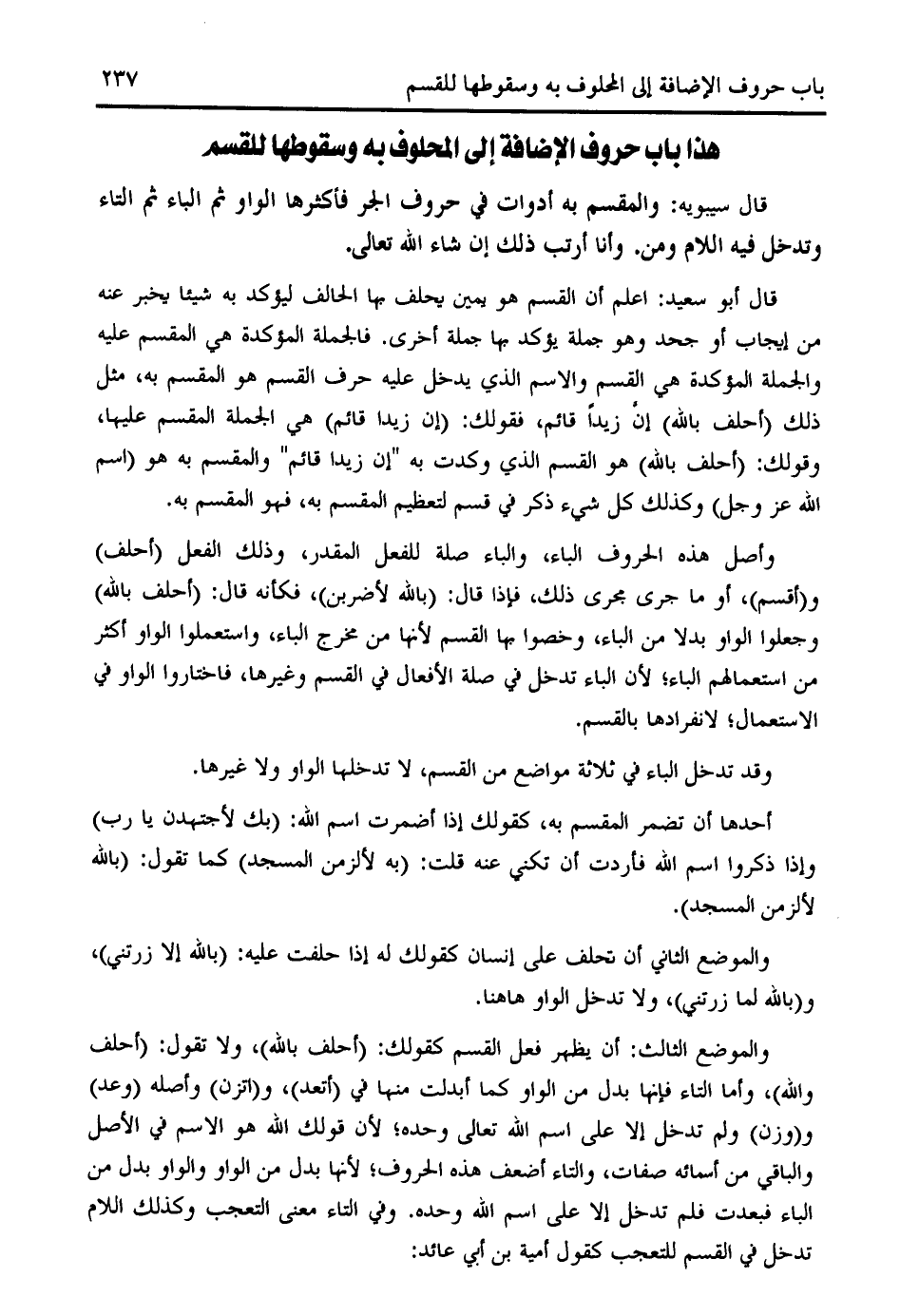 هذا باب حروف الإضافة إلى المحلوف به وسقوطها للقسم