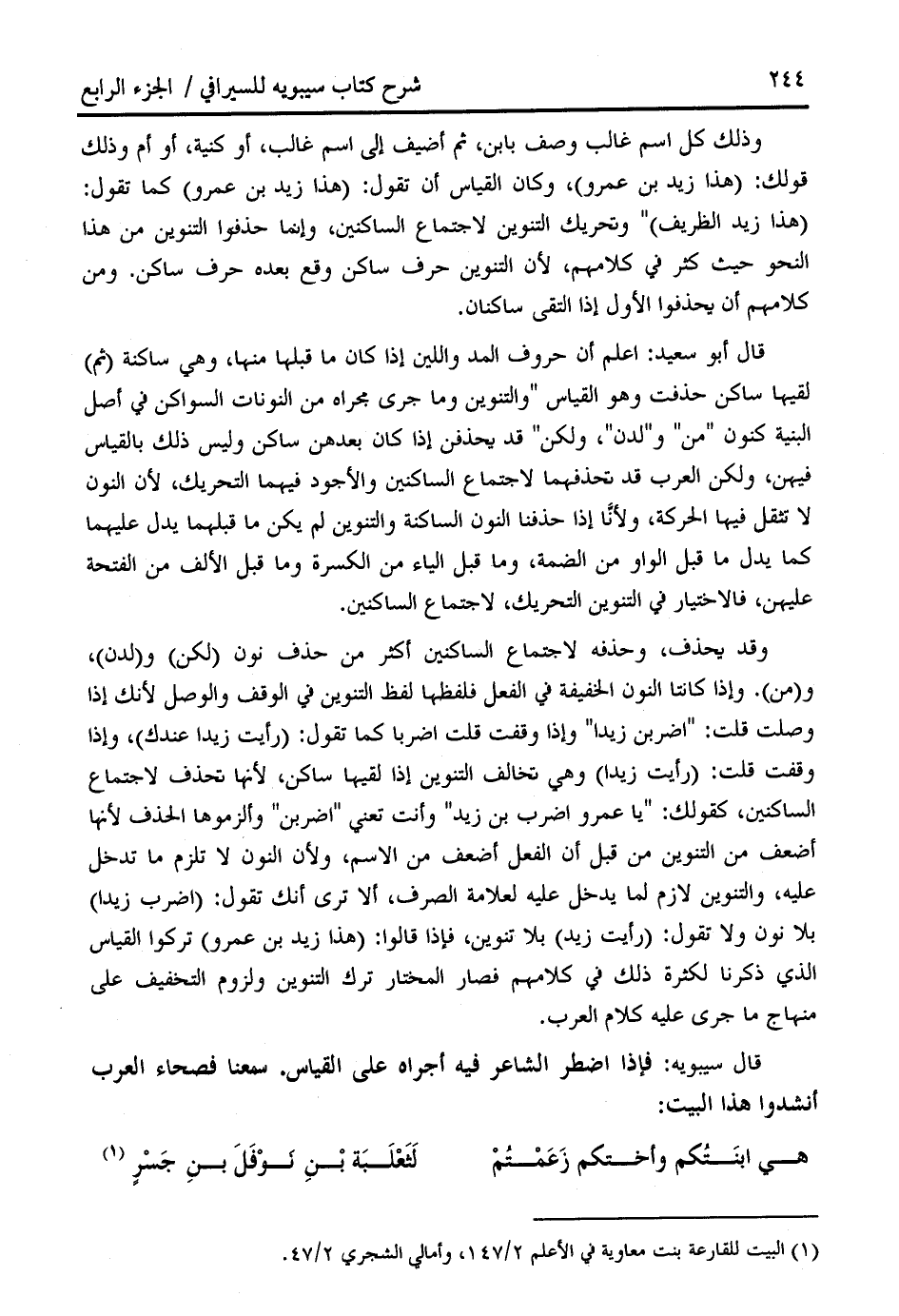 قال سيبويه: فإذا اضطر الشاعر فيه أجراه على القياس. سمعنا فصحاء العرب أنشدوا هذا البيت: