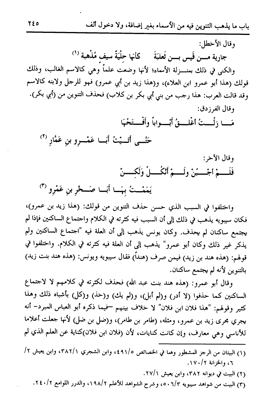 (¬3) البيت من شواهد سيبويه 3/ 506، وشرح الشواهد للأعلم 2/ 198، والدرر اللوامع 2/ 240.
