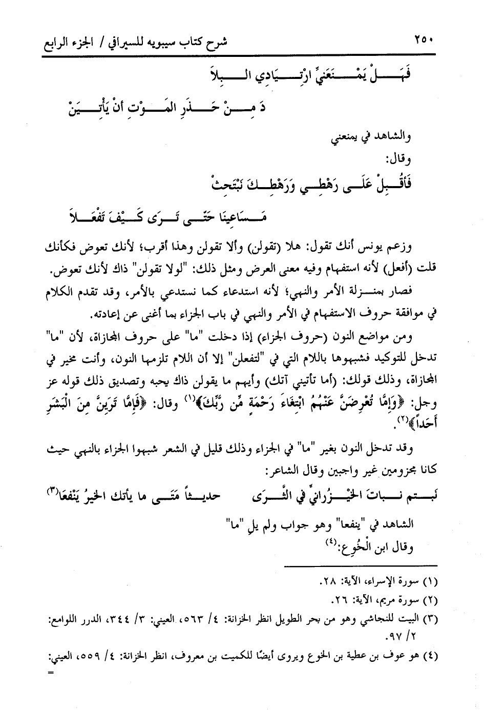 (¬3) البيت للنجاشي وهو من بحر الطويل انظر الخزانة: 4/ 563، العيني: 3/ 344، الدرر اللوامع: