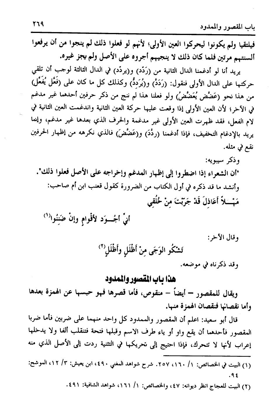 قال أبو سعيد: اعلم أن المقصور والممدود كل واحد منهما على ضربين فأما ضربا المقصور فأحدهما أن يقع واو