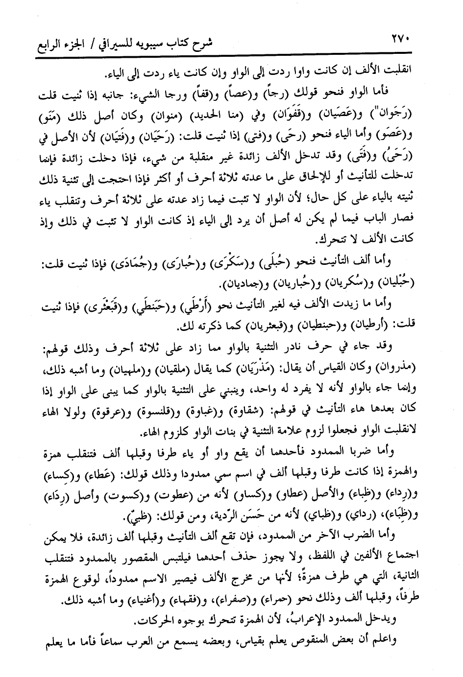 (مذروان) وكان القياس أن يقال: (مذريان) كما يقال (ملقيان) و (ملهيان) وما أشبه ذلك، وإنما جاء بالواو لأنه لا يفرد له واحد، وينبني على التثنية بالواو كما يبنى على الواو إذا كان بعدها هاء التأنيث في قولهم: (شقاوة) و (غباوة) و (قلنسوة) و (عرقوة) ولولا الهاء لانقلبت الواو فجعلوا لزوم علامة التثنية في بنات الواو كلزوم الهاء.