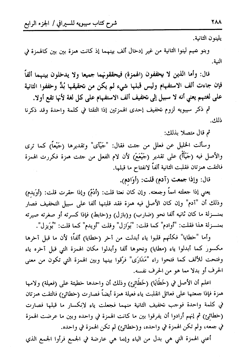 ثم ذكر سيبويه لزوم تخفيف إحدى الهمزتين إذا التقتا في كلمة واحدة وقد ذكرنا ذلك.