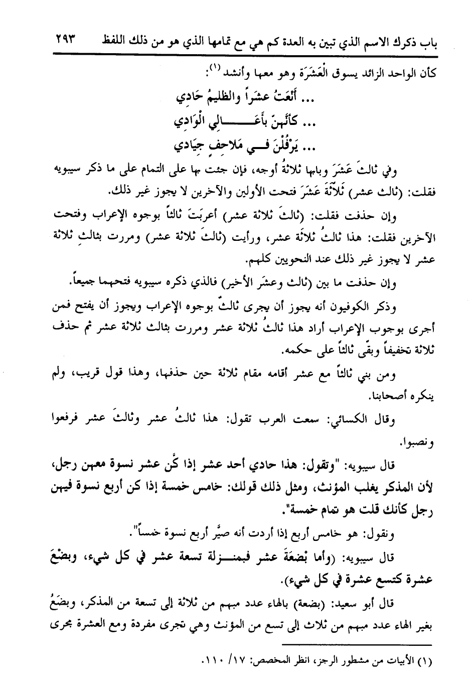 قال سيبويه: (وأما بضعة عشر فبمنزلة تسعة عشر في كل شيء، وبضع عشرة كتسع عشرة في كل شيء).