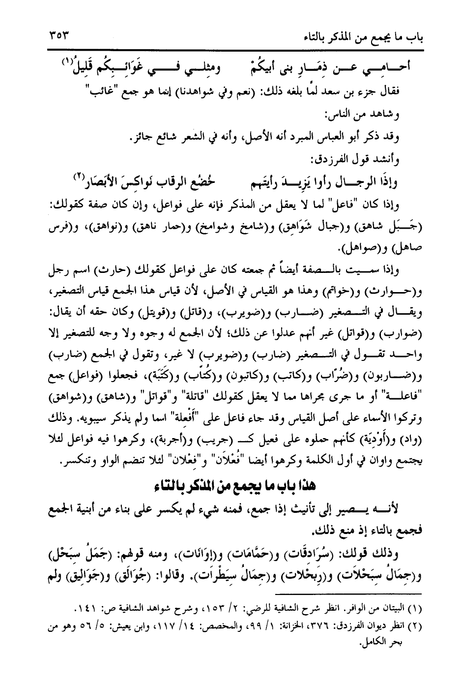 (¬1) البيتان من الوافر. انظر شرح الشافية للرضي: 2/ 153، وشرح شواهد الشافية ص: 141.
