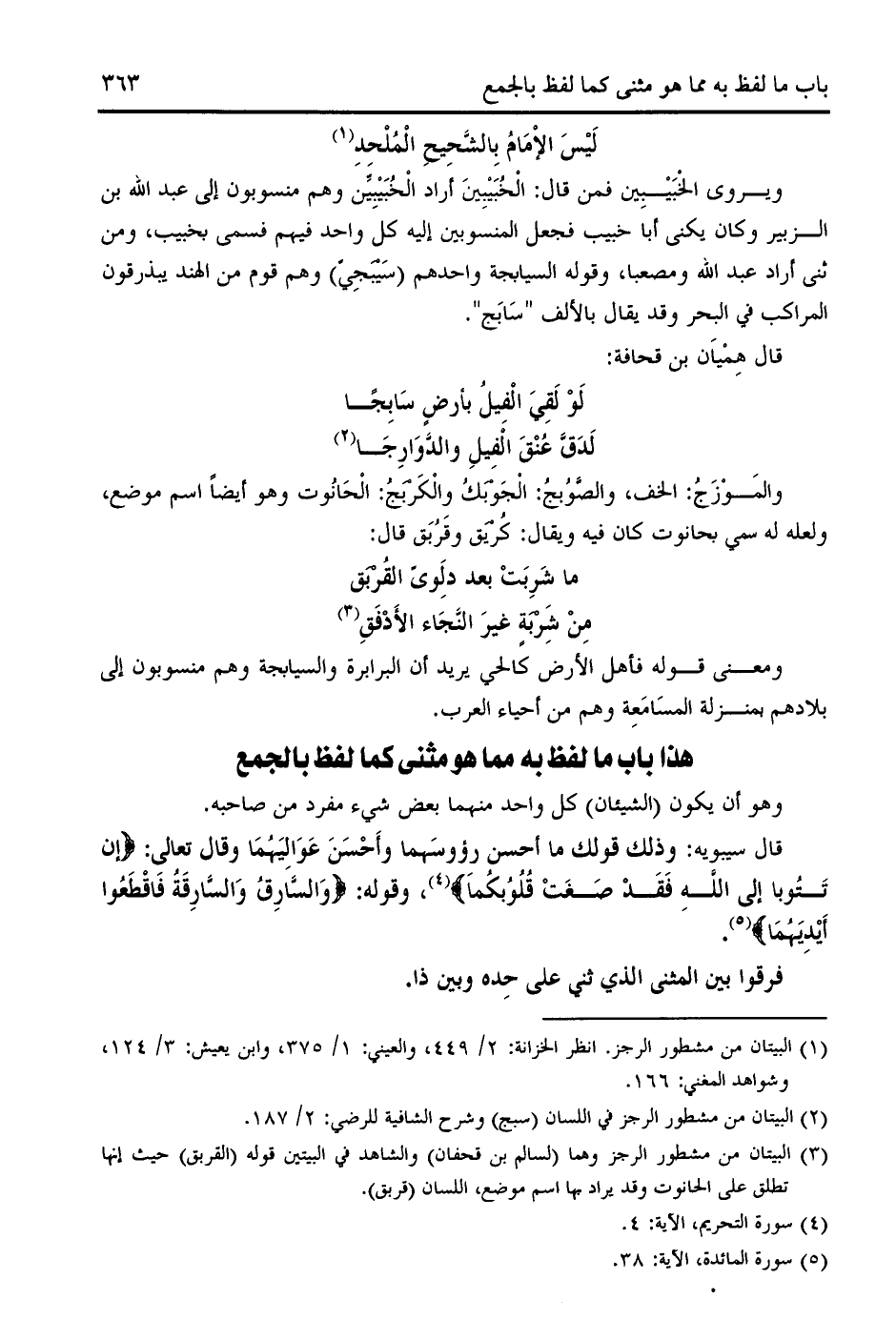 هذا باب ما لفظ به مما هو مثنى كما لفظ بالجمع