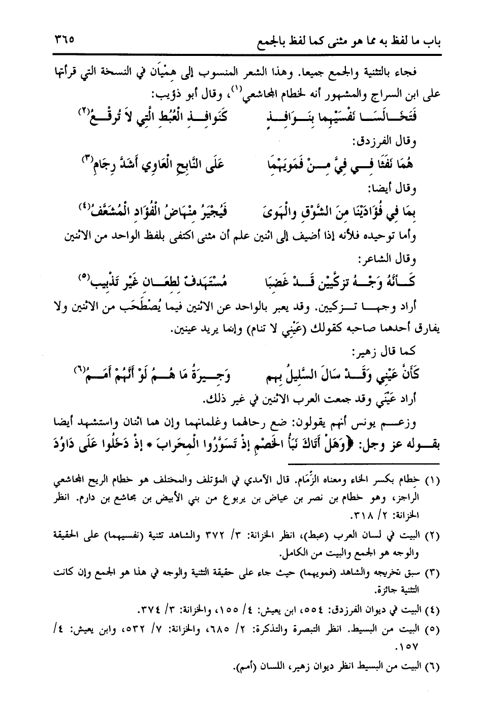 (¬3) سبق تخريجه والشاهد (فمويهما) حيث جاء على حقيقة التثنية والوجه في هذا هو الجمع وإن كانت التثنية جائزة.
