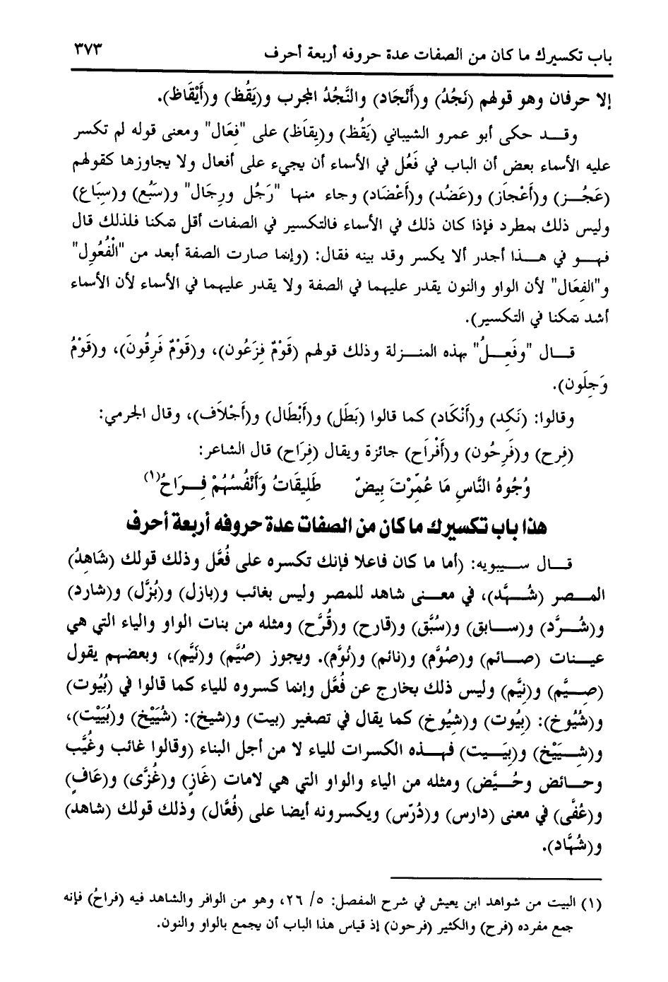 هذا باب تكسيرك ما كان من الصفات عدة حروفه أربعة أحرف
