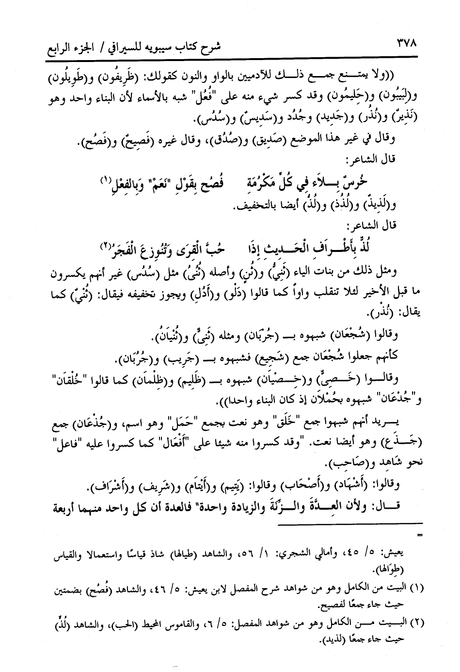 (¬1) البيت من الكامل وهو من شواهد شرح المفصل لابن يعيش: 5/ 46، والشاهد (فصح) بضمتين حيث جاء جمعا لفصيح.