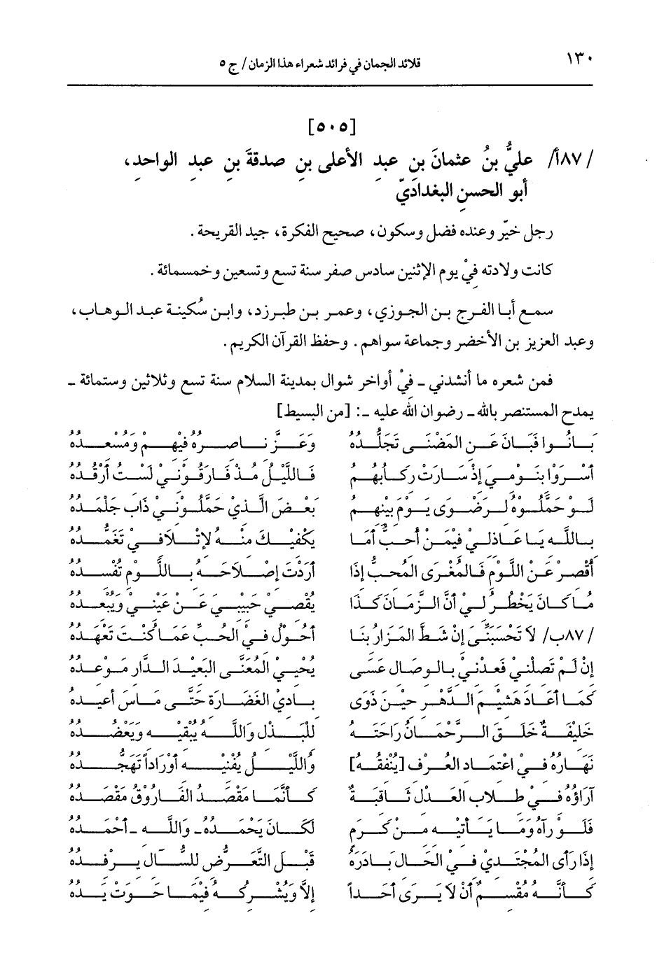 كتاب قلائد الجمان في فرائد شعراء هذا الزمان (اسم الجزء: 4)