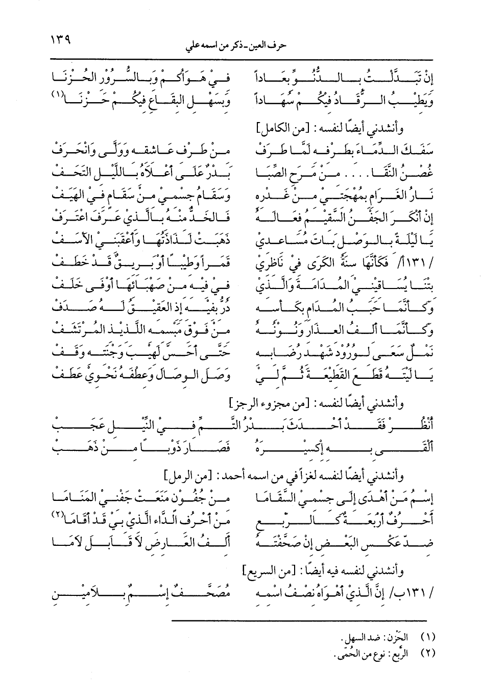 /131 ب/ إنَّ الَّذي أهواه نصف اسمه ... مصحَّفٌ إسمٌ بلامين
