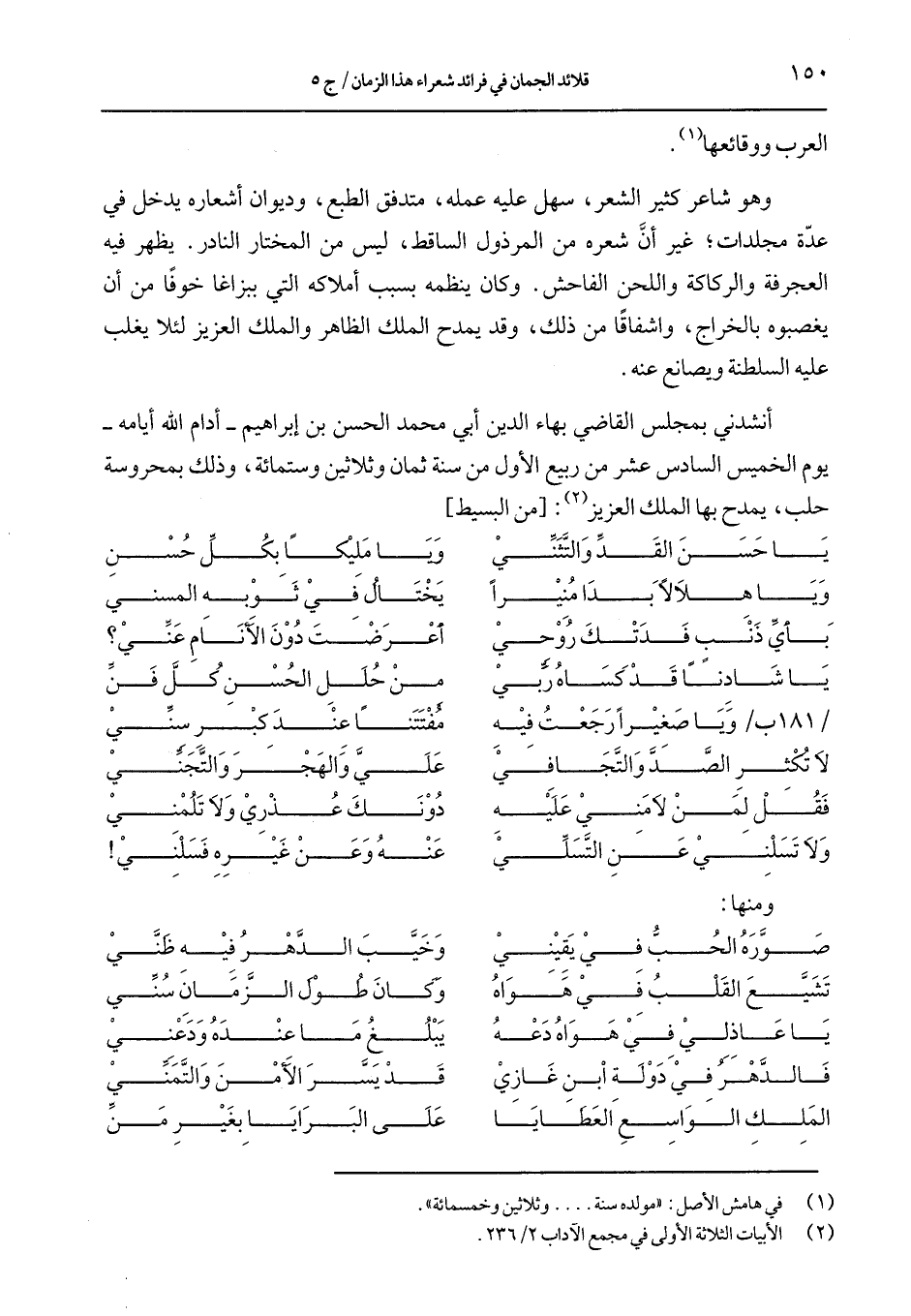 كتاب قلائد الجمان في فرائد شعراء هذا الزمان (اسم الجزء: 4)
