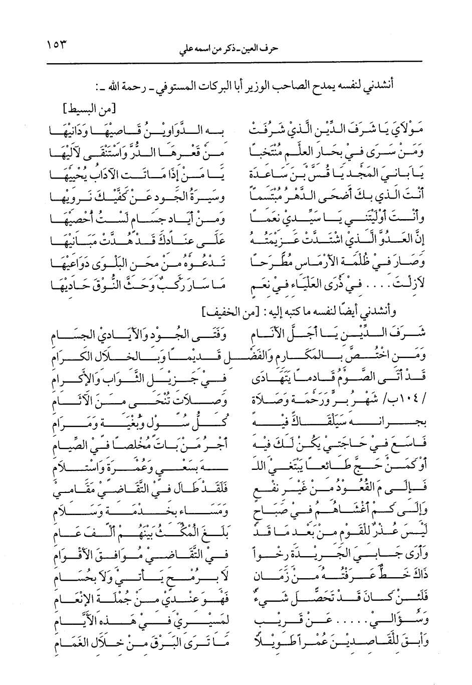 أنشدني لنفسه يمدح الصاحب الوزير أبا البركات المستوفي -رحمة الله-: