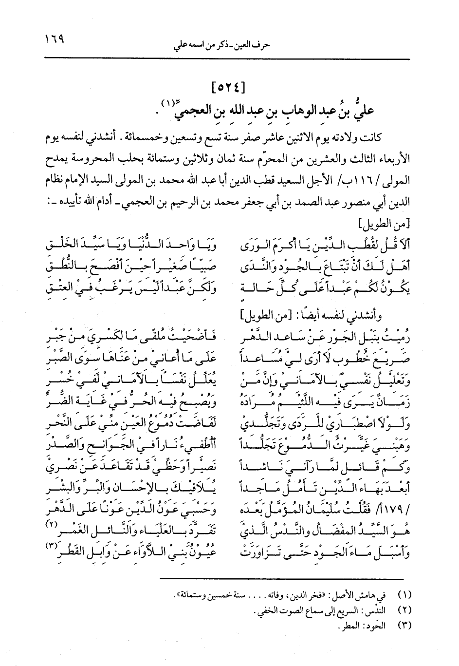 عليُّ بن عبد الوهاب بن عبد الله بن العجميِّ.