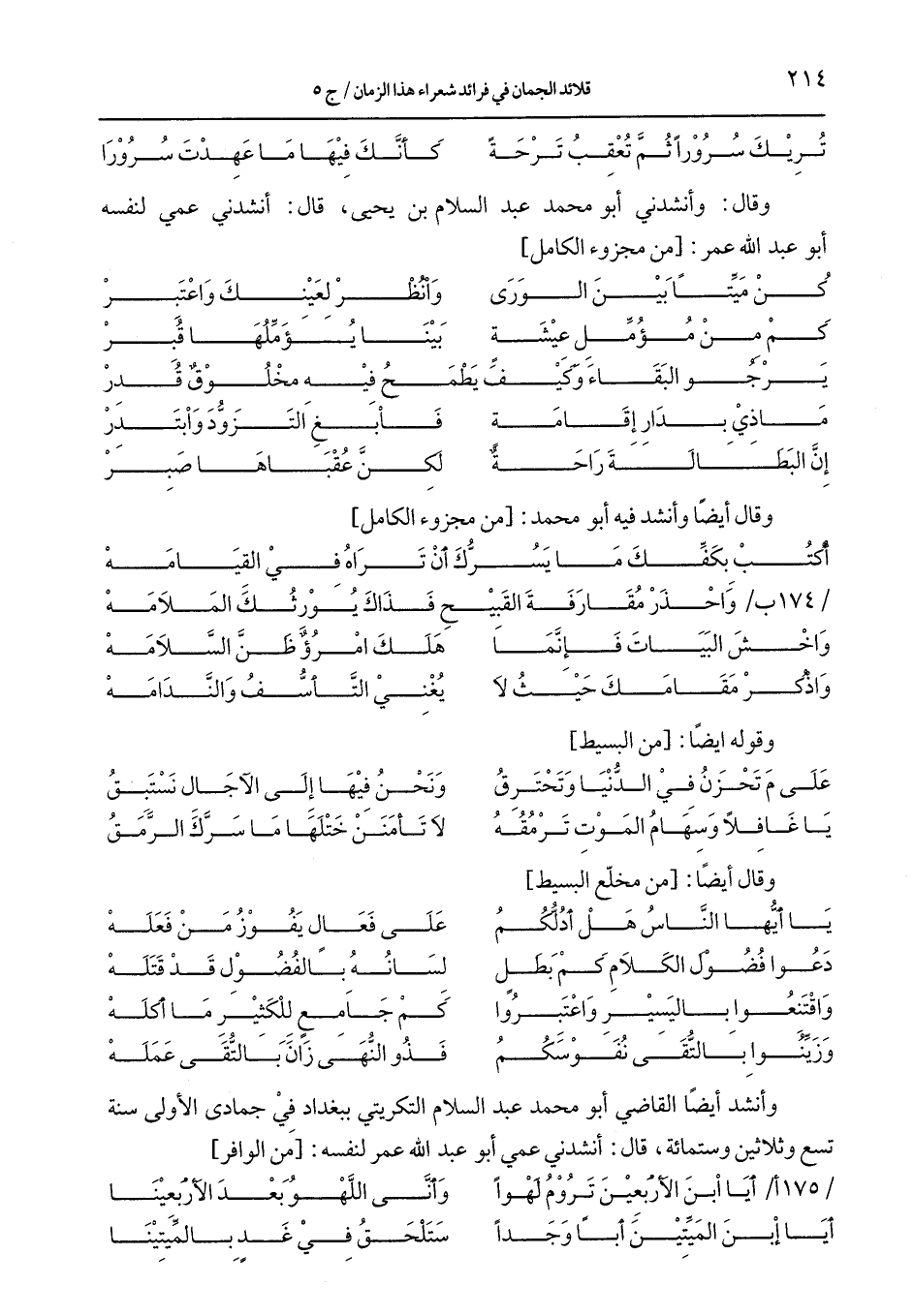 كتاب قلائد الجمان في فرائد شعراء هذا الزمان (اسم الجزء: 4)