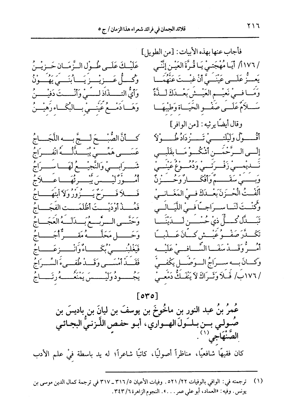 /176 ب/ فلا وثراك لا ينفك دمعي ... يجود وليس يمنعه رتاج