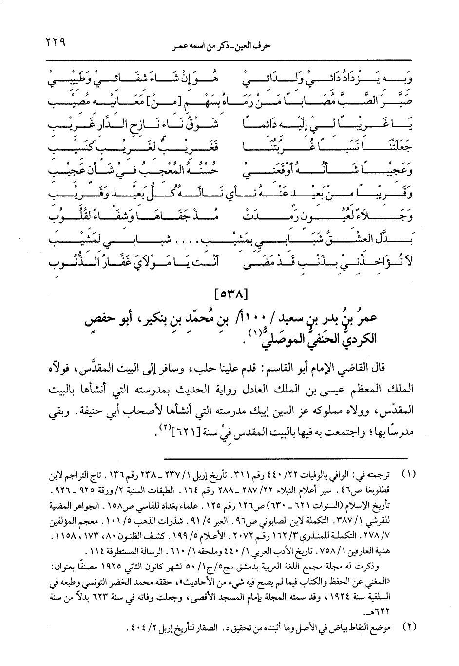 عمر بن بدر بن سعيد /100 أ/ بن محمّد بن بنكير، أبو حفصٍ الكرديُّ الحنفيُّ الموصليُّ.