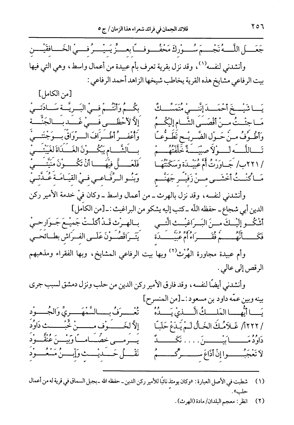 جعل الله نجم سورك محفوفًا بعزَّ يسير في الخافقين وأنشدني لنفسه، وقد نزل بقرية تعرف بأم عبيدة من أعمال واسط، وهي التي فيها بيت الرفاعي مشايخ هذه القرية يخاطب شيخها الزاهد أحمد الرفاعي: