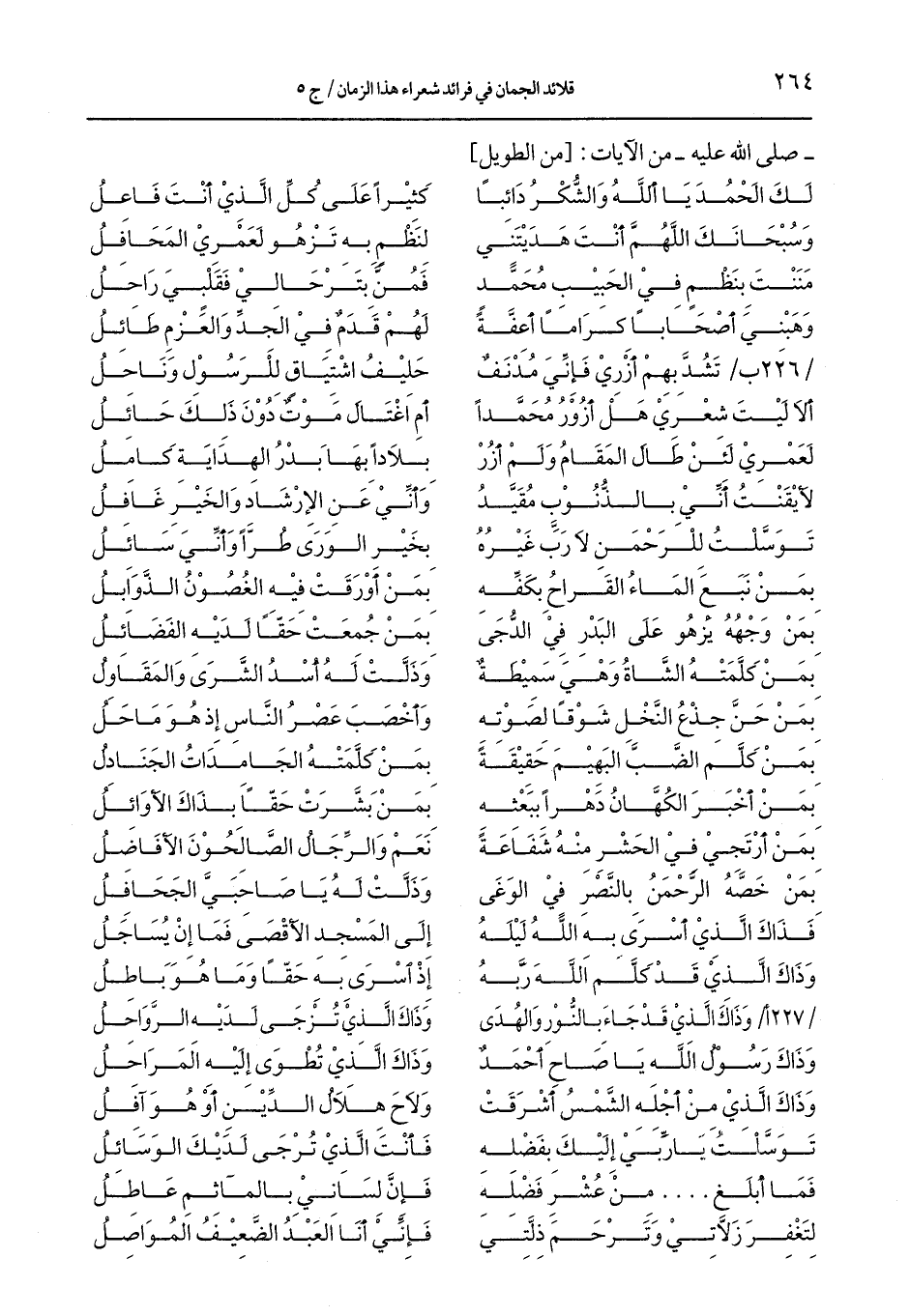 وسبحانك اللَّهم أنت هديتني ... لنظم به تزهو لعمري المحافل