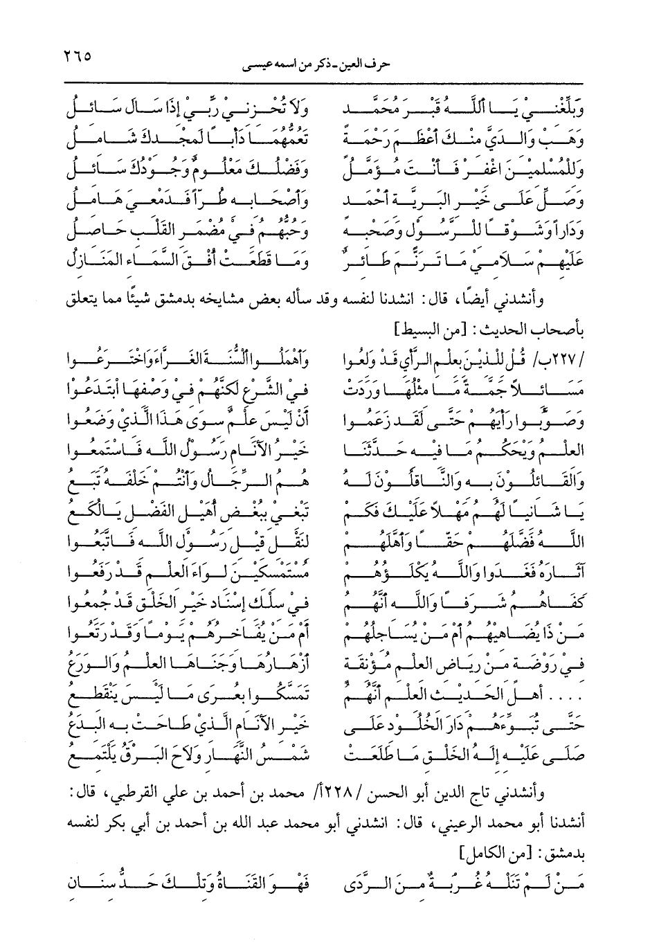 وأنشدني أيضًا، قال: انشدنا لنفسه وقد سأله بعض مشايخه بدمشق شيئًا مما يتعلق بأصحاب الحديث: [من البسيط]