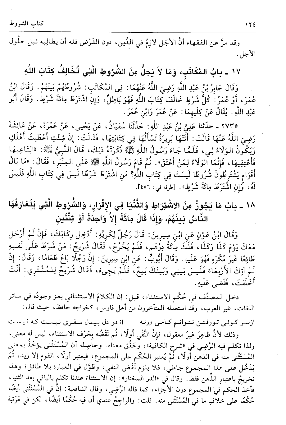 18 - بابُ مَا يَجُوزُ مِنَ الاِشْتِرَاطِ وَالثُّنْيَا فِى الإِقْرَارِ، وَالشُّرُوطِ الَّتِى يَتَعَارَفُهَا النَّاسُ بَيْنَهُمْ، وَإِذَا قَالَ مِائَةٌ إِلاَّ وَاحِدَةً أَوْ ثِنْتَيْنِ