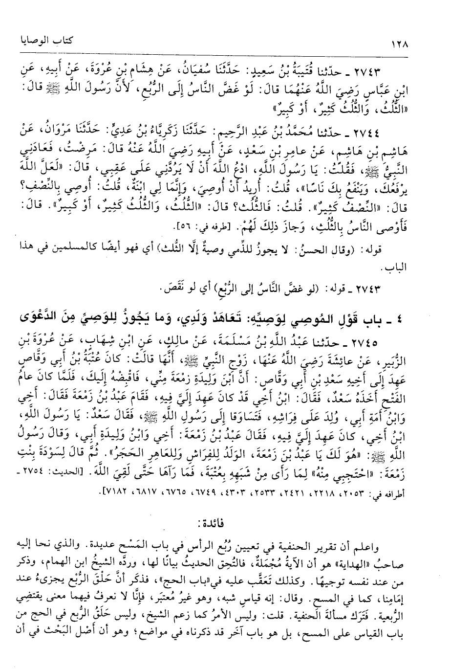 2743 - حَدَّثَنَا قُتَيْبَةُ بْنُ سَعِيدٍ حَدَّثَنَا سُفْيَانُ عَنْ هِشَامِ بْنِ عُرْوَةَ عَنْ أَبِيهِ عَنِ ابْنِ عَبَّاسٍ - رضى الله عنهما - قَالَ لَوْ غَضَّ النَّاسُ إِلَى الرُّبْعِ، لأَنَّ رَسُولَ اللَّهِ - صلى الله عليه وسلم - قَالَ «الثُّلُثُ، وَالثُّلُثُ كَثِيرٌ أَوْ كَبِيرٌ». تحفة 5876 - 4/ 4