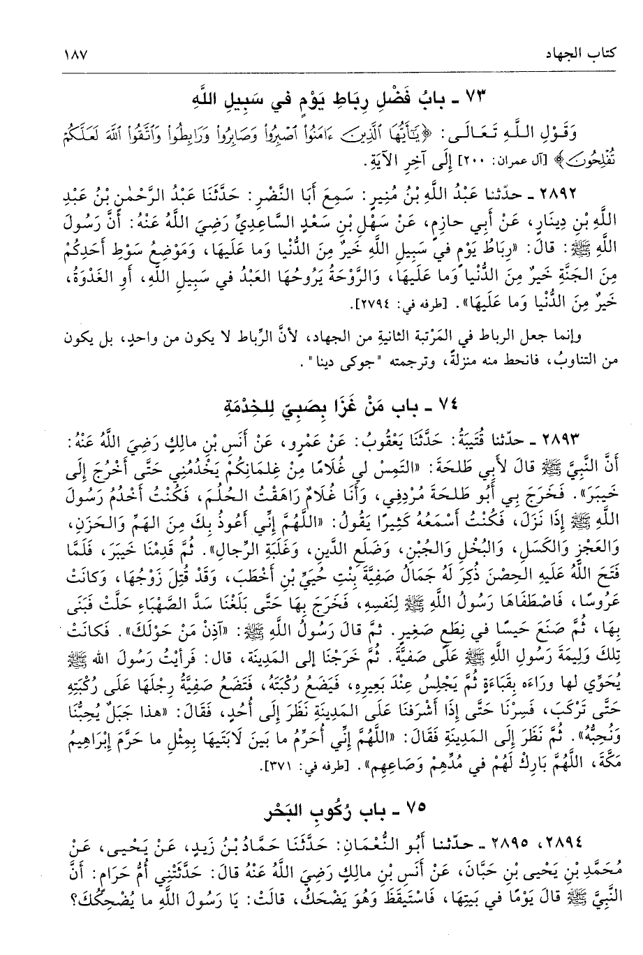 74 - باب مَنْ غَزَا بِصَبِيٍّ لِلْخِدْمَةِ