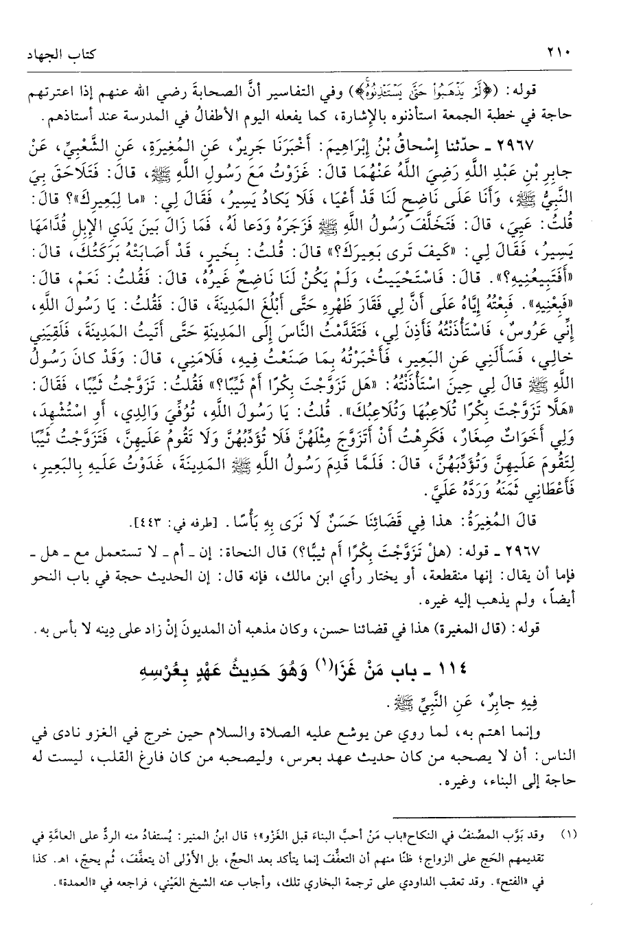 114 - باب مَنْ غَزَا (¬1) وَهُوَ حَدِيثُ عَهْدٍ بِعُرْسِهِ