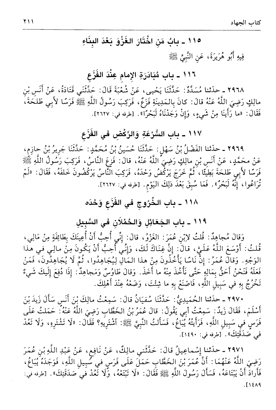 115 - باب مَنِ اخْتَارَ الْغَزْوَ بَعْدَ الْبِنَاءِ
