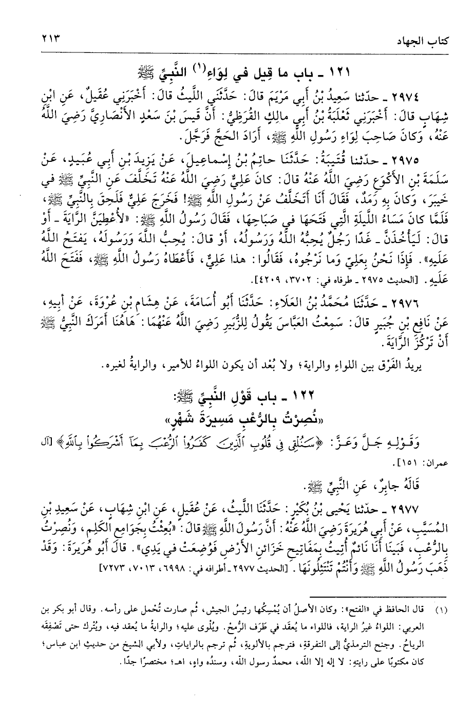 122 - باب قَوْلِ النَّبِيِّ: - صلى الله عليه وسلم - «نُصِرْتُ بِالرُّعْبِ مَسِيرَةَ شَهْرٍ»