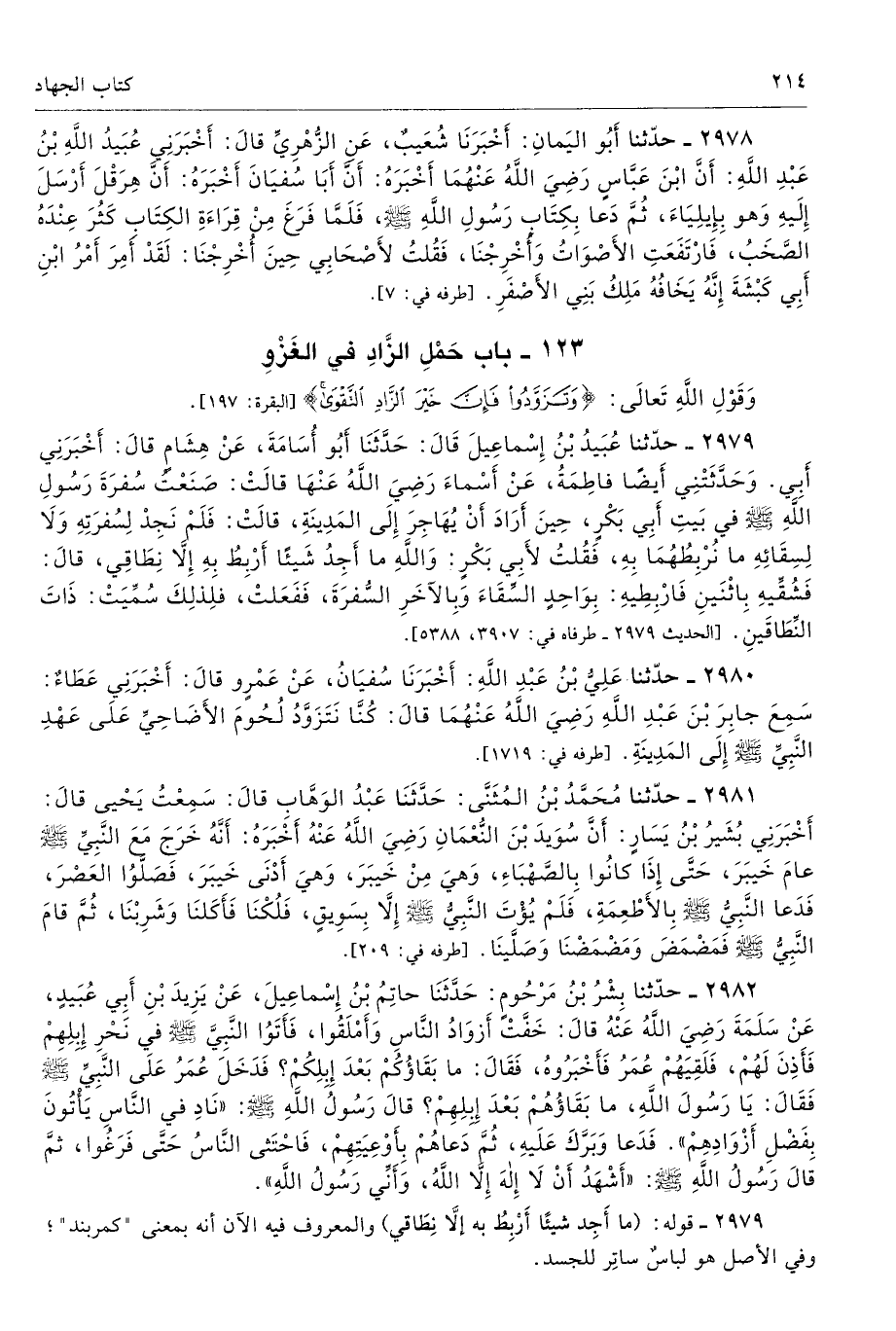 123 - باب حَمْلِ الزَّادِ فِى الْغَزْوِ
