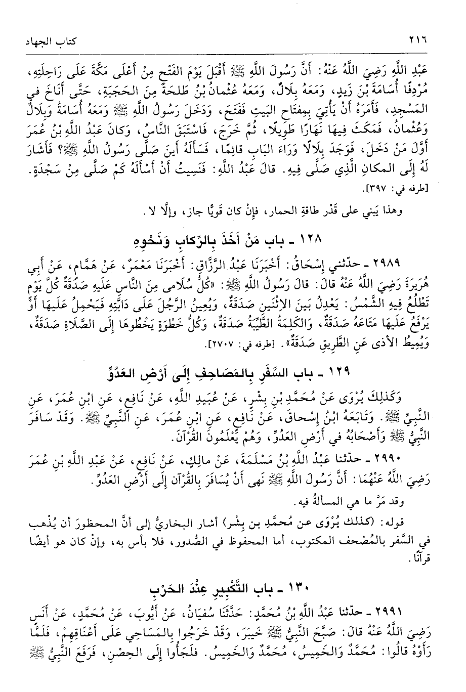 129 - باب السَّفَرِ بِالْمَصَاحِفِ إِلَى أَرْضِ الْعَدُوِّ