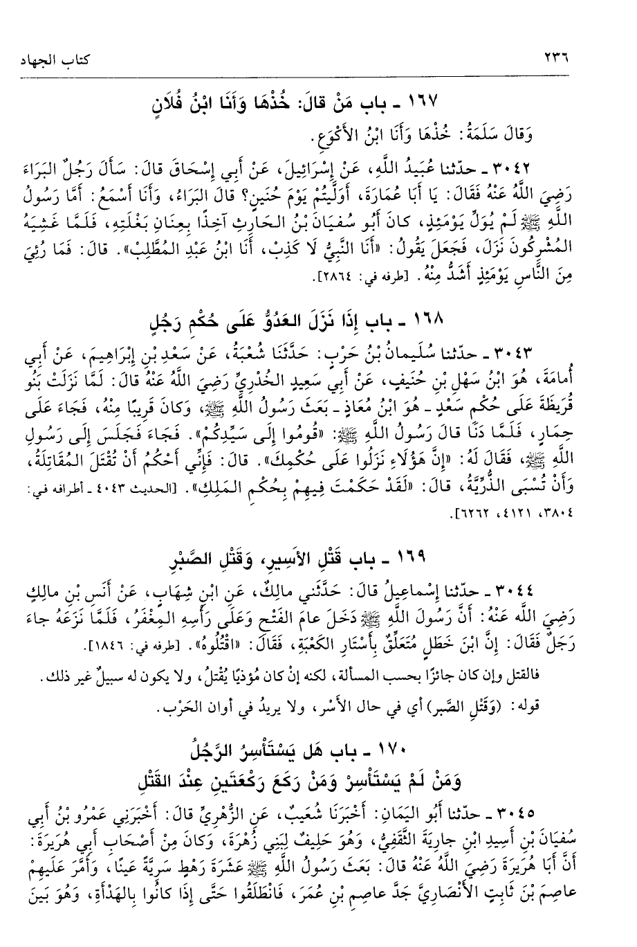 169 - باب قَتْلِ الأَسِيرِ، وَقَتْلِ الصَّبْرِ