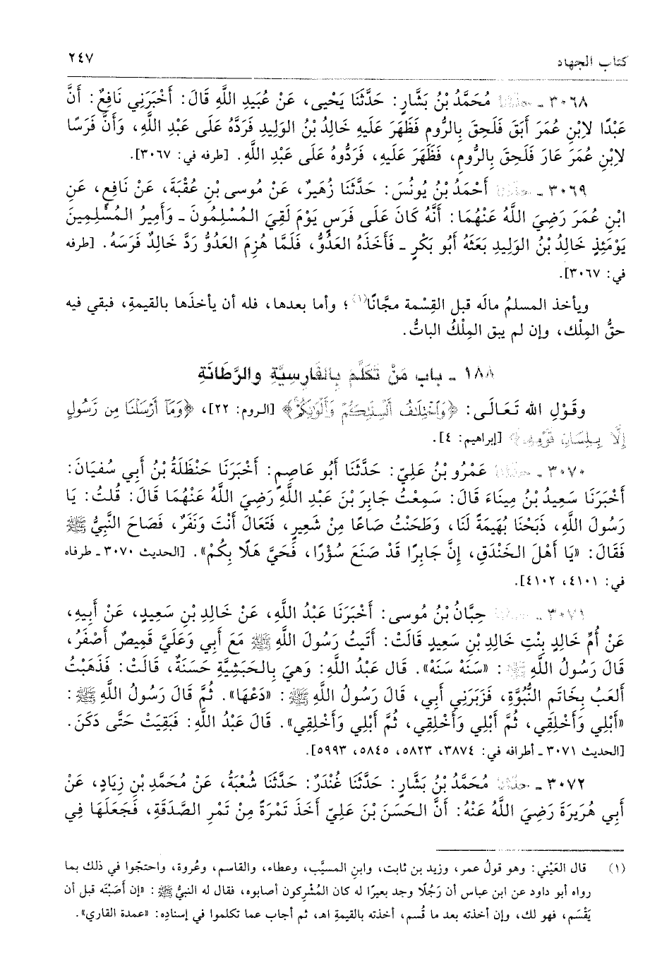188 - باب مَنْ تَكَلَّمَ بِالْفَارِسِيَّةِ وَالرَّطَانَةِ