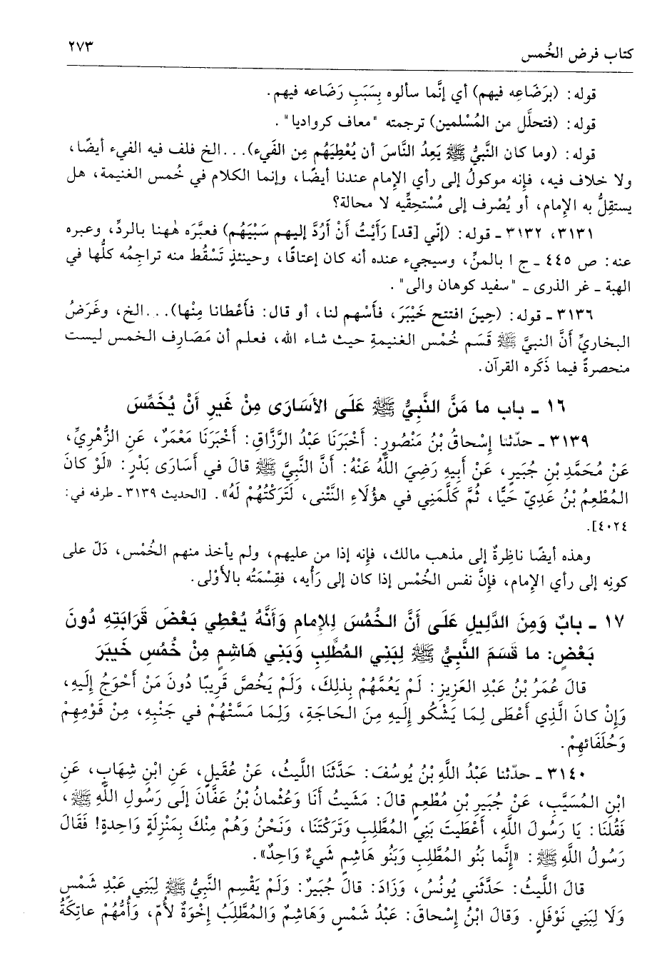 17 - باب وَمِنَ الدَّلِيلِ عَلَى أَنَّ الْخُمُسَ لِلإِمَامِ وَأَنَّهُ يُعْطِى بَعْضَ قَرَابَتِهِ دُونَ بَعْضٍ مَا قَسَمَ النَّبِيُّ - صلى الله عليه وسلم - لِبَنِي الْمُطَّلِبِ وَبَنِي هَاشِمٍ مِنْ خُمُسِ خَيْبَرَ