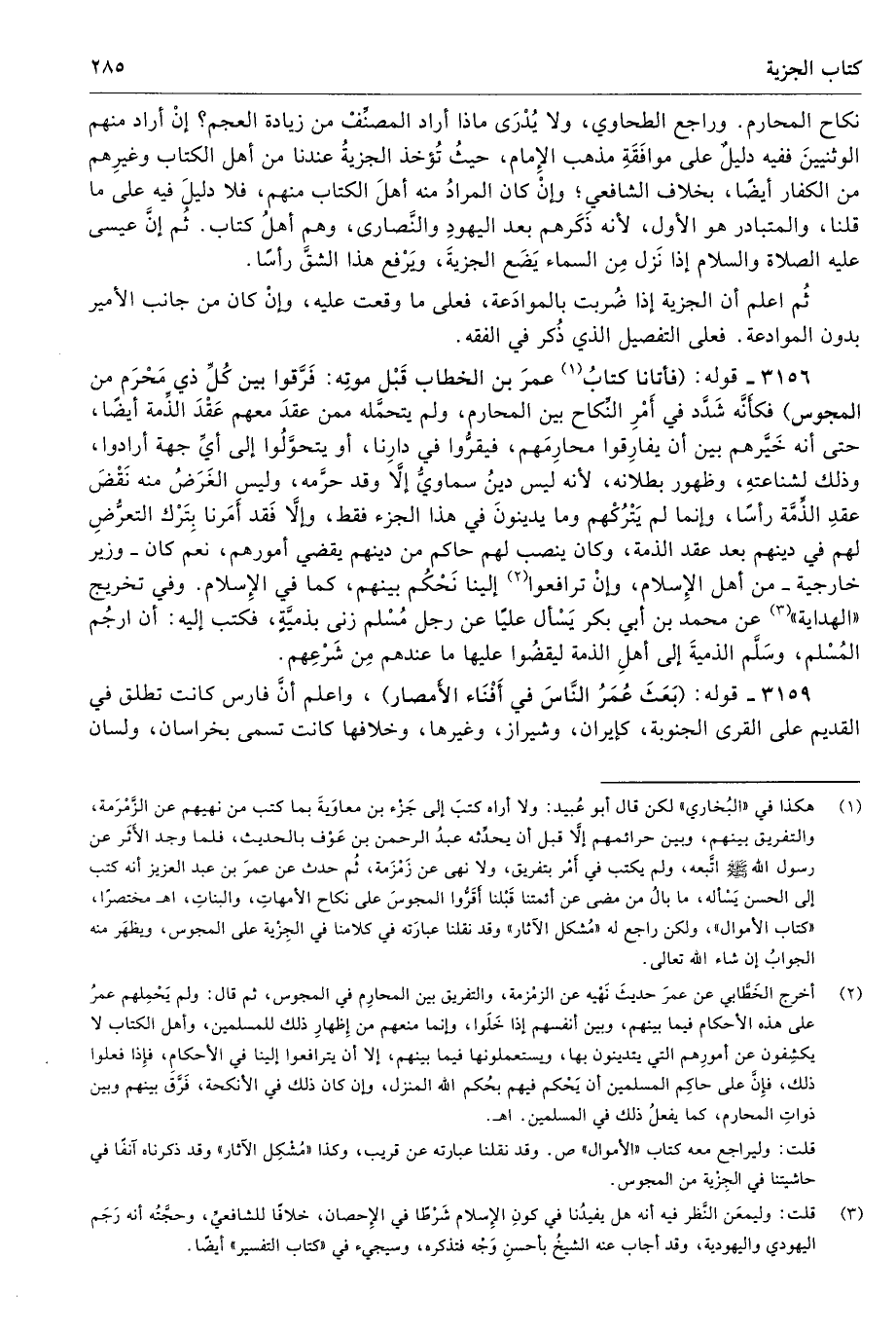 قلت: وليراجع معه كتاب "الأموال" ص. وقد نقلنا عبارته عن قريب، وكذا "مُشْكِل الآثار" وقد ذكرناه آنفًا في حاشيتنا في الجِزْية من المجوس.