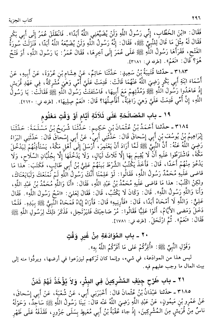 19 - باب الْمُصَالَحَةِ عَلَى ثَلاَثَةِ أَيَّامٍ أَوْ وَقْتٍ مَعْلُومٍ