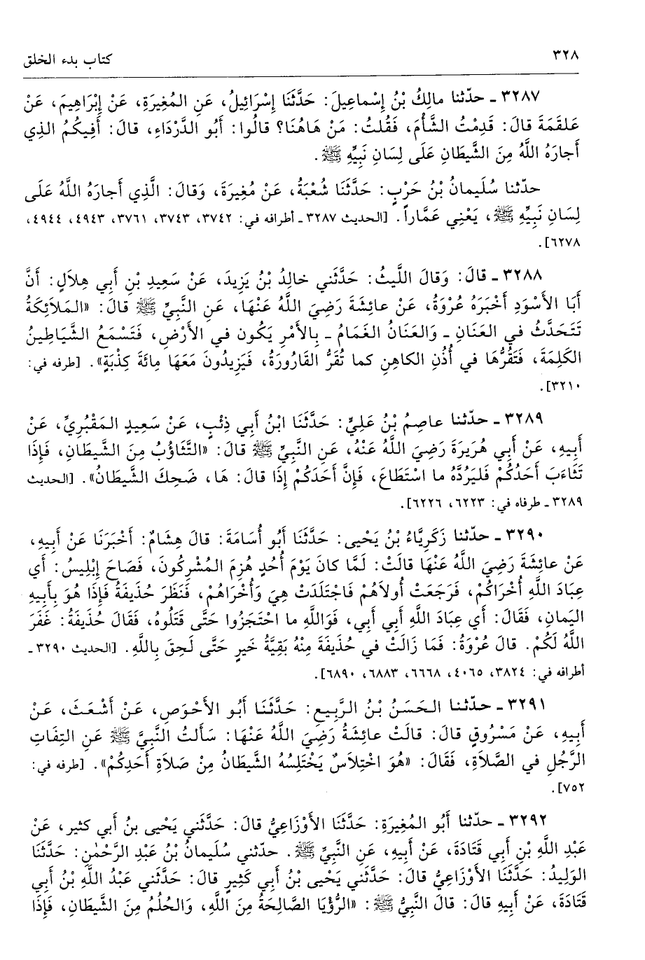 3289 - حَدَّثَنَا عَاصِمُ بْنُ عَلِىٍّ حَدَّثَنَا ابْنُ أَبِى ذِئْبٍ عَنْ سَعِيدٍ الْمَقْبُرِىِّ عَنْ أَبِيهِ عَنْ أَبِى هُرَيْرَةَ - رضى الله عنه - عَنِ النَّبِىِّ - صلى الله عليه وسلم - قَالَ «التَّثَاؤُبُ مِنَ الشَّيْطَانِ، فَإِذَا تَثَاءَبَ أَحَدُكُمْ فَلْيَرُدَّهُ مَا اسْتَطَاعَ، فَإِنَّ أَحَدَكُمْ إِذَا قَالَ هَا. ضَحِكَ الشَّيْطَانُ». طرفاه 6223، 6226 تحفة 14322، 13019