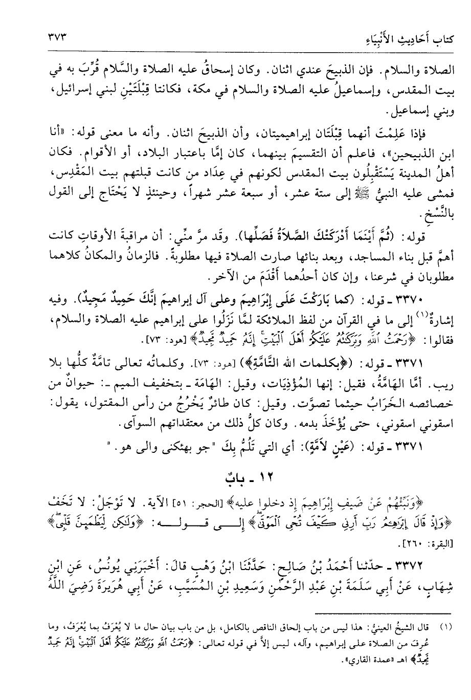 الصلاة والسلام. فإن الذبيحَ عندي اثنان. وكان إسحاقُ عليه الصلاة والسَّلام قُرِّبَ به في بيت المقدس، وإسماعيلُ عليه الصلاة والسلام في مكة، فكانتا قِبْلَتَيْنِ لبني إسرائيل، وبني إسماعيل.