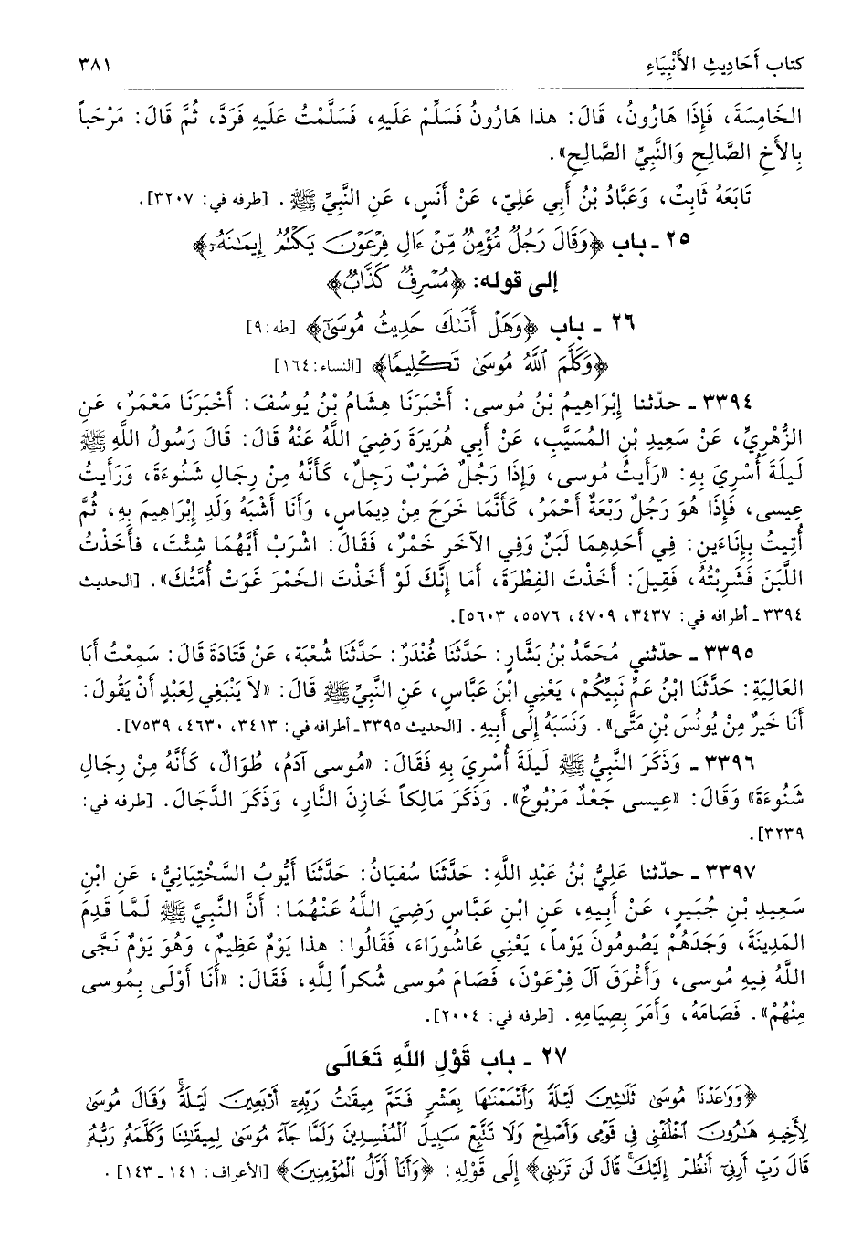 26 - باب {وَهَلْ أَتَاكَ حَدِيثُ مُوسَى} [طه: 9] {وَكَلَّمَ اللَّهُ مُوسَى تَكْلِيمًا} [النساء: 164]