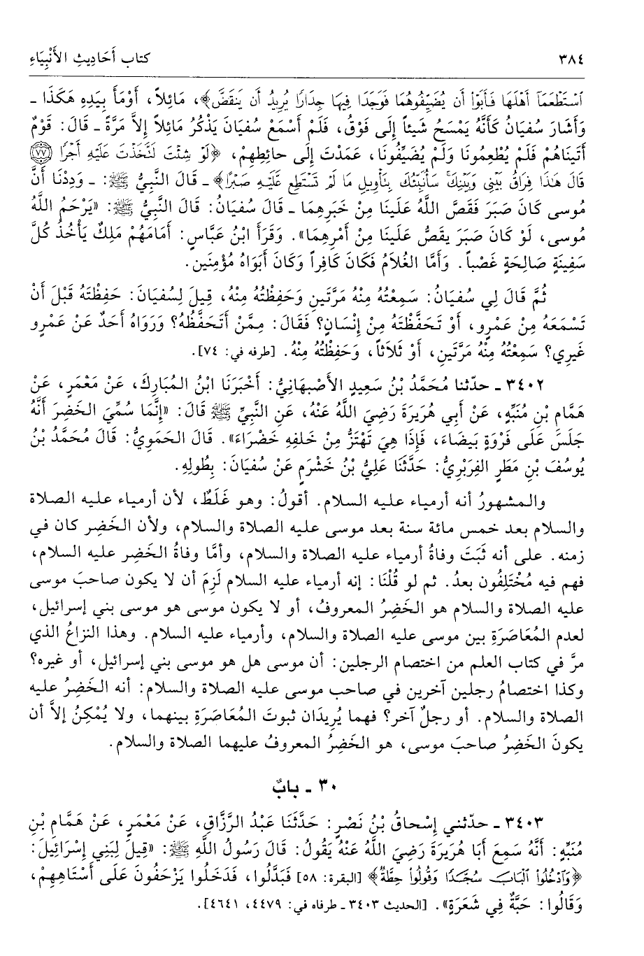 3402 - حَدَّثَنَا مُحَمَّدُ بْنُ سَعِيدٍ الأَصْبَهَانِىُّ أَخْبَرَنَا ابْنُ الْمُبَارَكِ عَنْ مَعْمَرٍ عَنْ هَمَّامِ بْنِ مُنَبِّهٍ عَنْ أَبِى هُرَيْرَةَ - رضى الله عنه - عَنِ النَّبِىِّ - صلى الله عليه وسلم - قَالَ «إِنَّمَا سُمِّىَ الْخَضِرُ أَنَّهُ جَلَسَ عَلَى فَرْوَةٍ بَيْضَاءَ فَإِذَا هِىَ تَهْتَزُّ مِنْ خَلْفِهِ خَضْرَاءَ». تحفة 14682