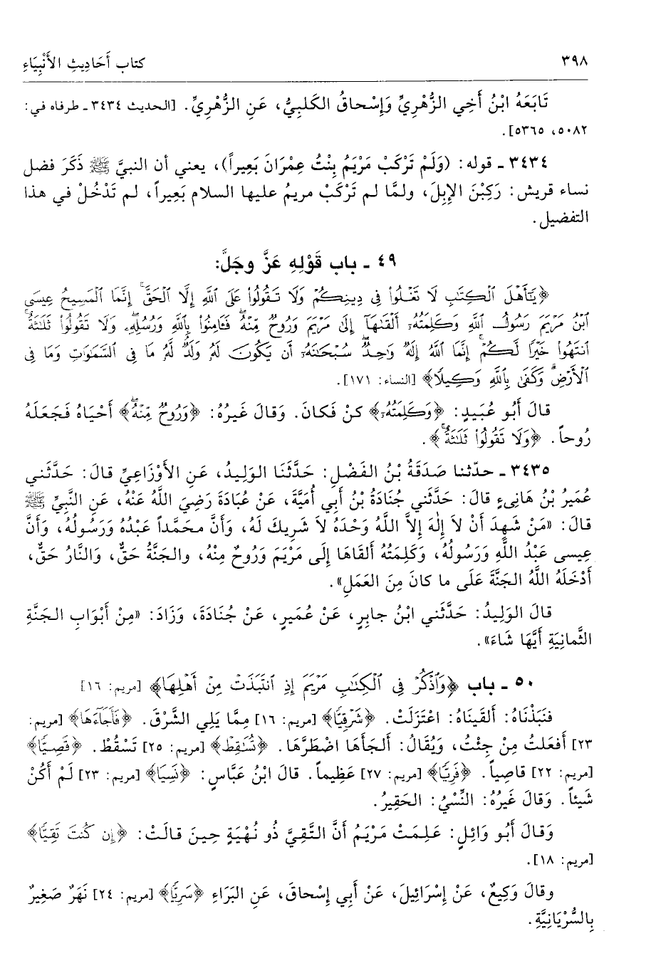 50 - باب {وَاذْكُرْ فِي الْكِتَابِ مَرْيَمَ إِذِ انْتَبَذَتْ مِنْ أَهْلِهَا} [مريم: 16]