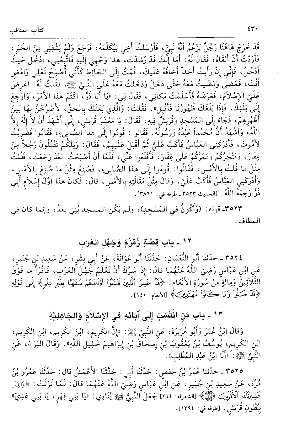 12 - باب قِصَّةِ زَمْزَمَ وَجَهْلِ الْعَرَبِ