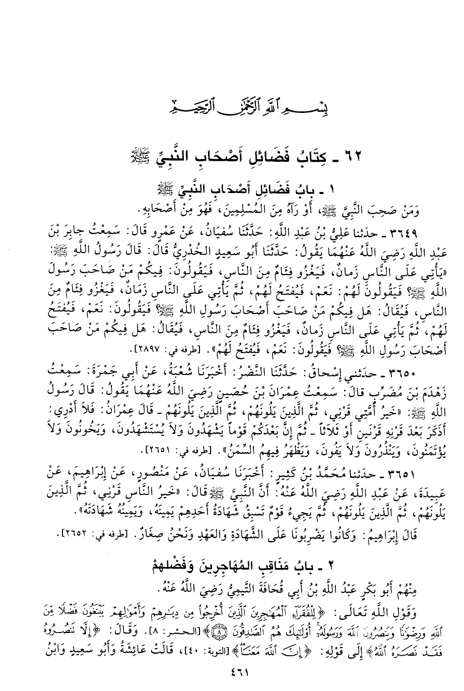 1 - باب فَضَائِلِ أَصْحَابِ النَّبِيِّ - صلى الله عليه وسلم -