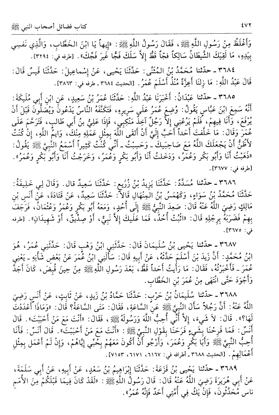 3689 - حَدَّثَنَا يَحْيَى بْنُ قَزَعَةَ حَدَّثَنَا إِبْرَاهِيمُ بْنُ سَعْدٍ عَنْ أَبِيهِ عَنْ أَبِى سَلَمَةَ عَنْ أَبِى هُرَيْرَةَ - رضى الله عنه - قَالَ قَالَ رَسُولُ اللَّهِ - صلى الله عليه وسلم - «لَقَدْ كَانَ فِيمَا قَبْلَكُمْ مِنَ الأُمَمِ مُحَدَّثُونَ، فَإِنْ يَكُ فِى أُمَّتِى أَحَدٌ فَإِنَّهُ عُمَرُ». طرفه 3469 - تحفة 14954