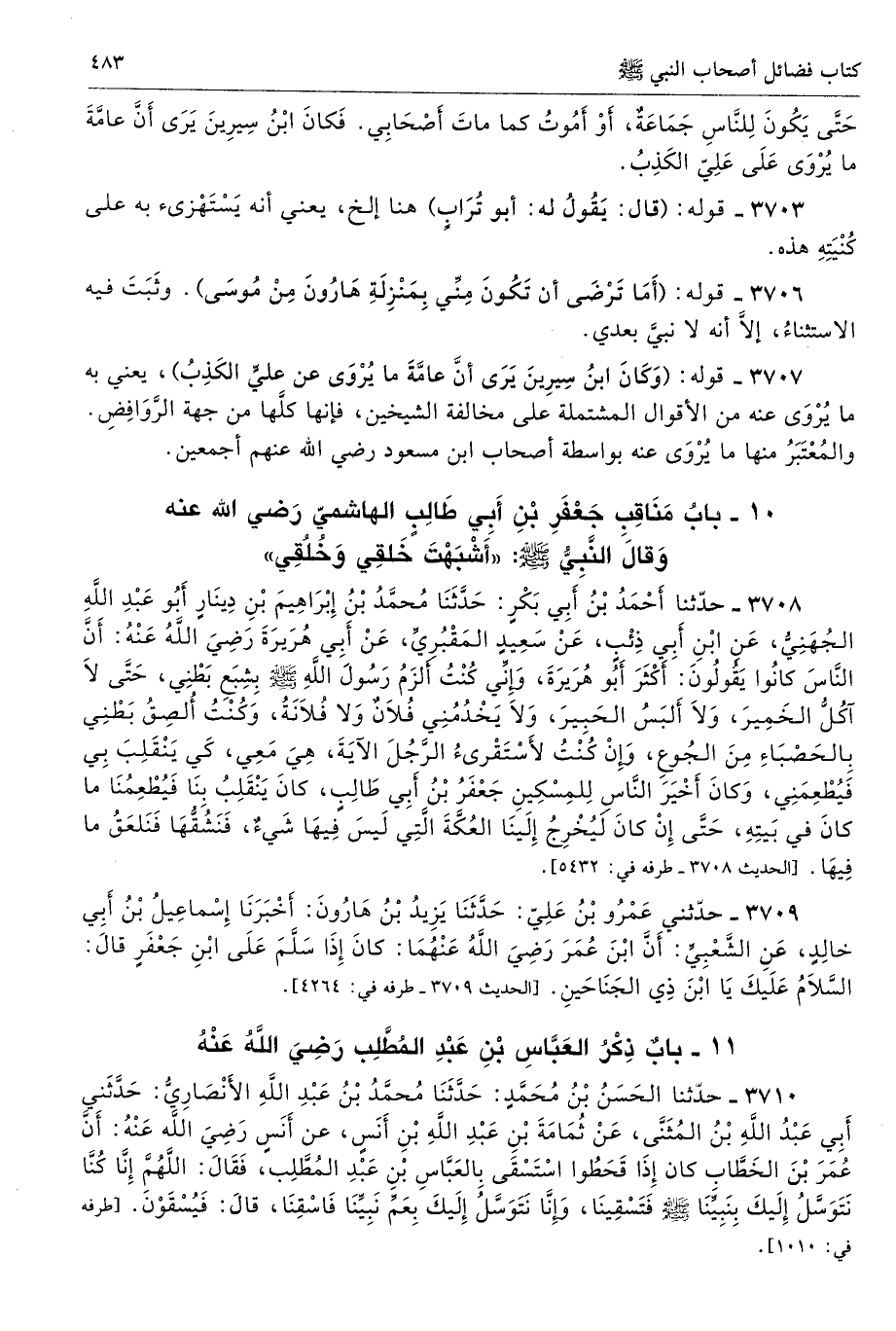 3707 - قوله: (وَكَانَ ابنُ سِيرِينَ يَرَى أنَّ عامَّةَ ما يُرْوَى عن عليَ الكَذِبُ)، يعني به ما يُرْوَى عنه من الأقوال المشتملة على مخالفة الشيخين، فإنها كلَّها من جهة الرَّوَافِضِ. والمُعْتَبَرُ منها ما يُرْوَى عنه بواسطة أصحاب ابن مسعود رضي الله عنهم أجمعين.